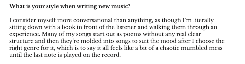 Interviews, Mental Health, MusicInterview: Crooked Forest New interview up. I answered some q’s for LoveInTheLyrics, talkin’ about songwriting and the lyrics behind “Driveway” An excerpt from the interview. Check it out here: https://www.loveinthelyrics.com/post/crooked-forest-brings-awareness Share this: Click to share on X (Opens in new window) X Click to share on Facebook (Opens in new window) Facebook Like Loading... Related