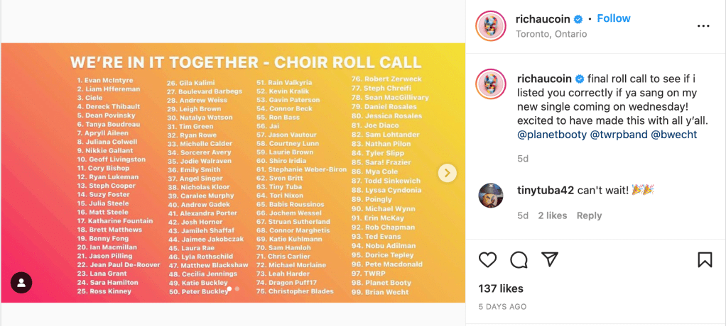 Super hype to share this track with everyone today. A few months back Canadian artist Rich Aucoin put out a call for vocalists to feature as part of the choir on a new song he was working on and I jumped at the opportunity.
