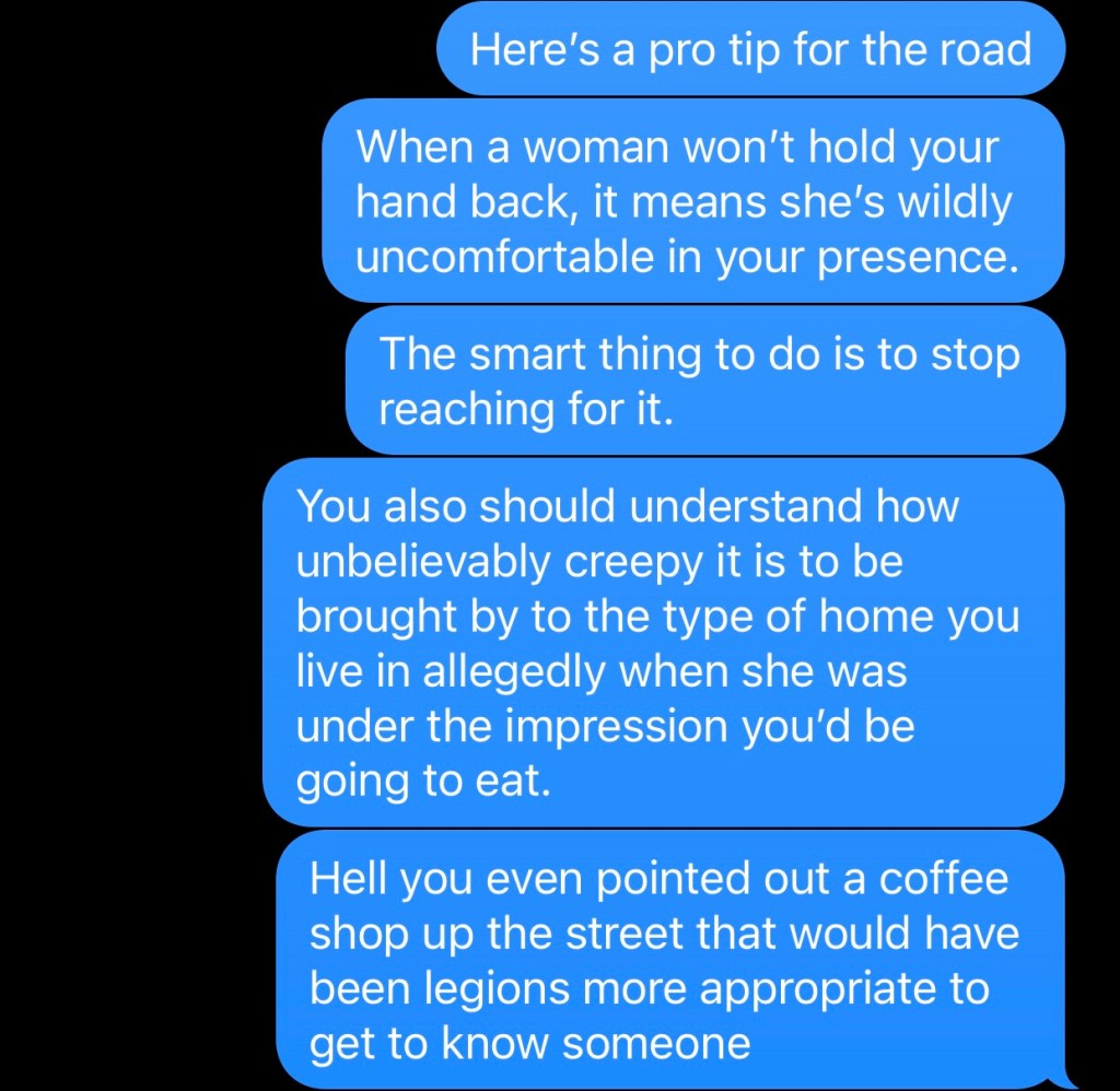Okay great, you already said you’d stop texting me and I thanked you for that and said good night. Why are we still here? I know there was nothing particularly innocuous about that text in particular but feel free to read through this entire blog post to further your understanding.