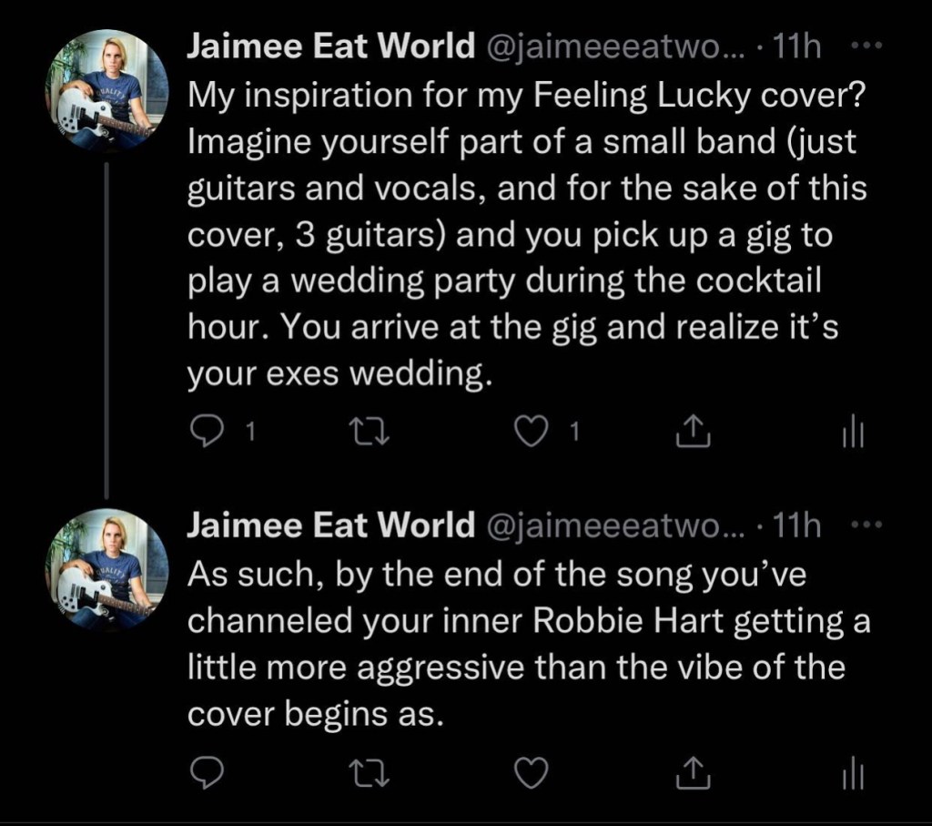 Now, let’s jump into those lyrics for a sec before we unveil what cover will mark our 20th release and cap off album 2 of the Jaimee Eat World compilation series.