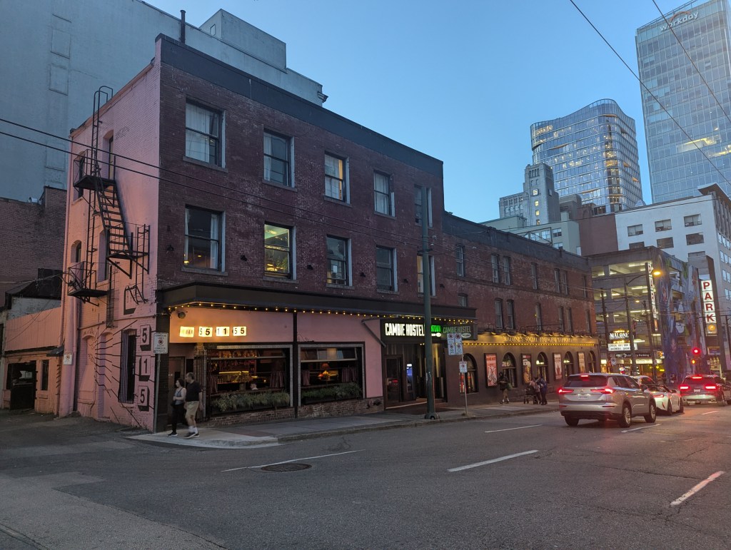 I chose a hostel on this leg of the trip to save costs. When I was looking at Vancouver hotels, I was amazed at how limited the selection was for more economic options. Everything seemed to be like $200+ a night even if you chose a dingy motel on the outskirts of the city, so I was stoked when I found the Cambie – although it was still a pricier option than most hostels I’ve seen because I upgraded myself from the 6-8 people dorms into a 2-bed female dorm. I don’t mind sharing space with others, but I do like my own space, too, so if I can work it in my favour to end up with my own room at reduced pricing, I will. And it’d turn out that was the smart move. Of the 4 nights I stayed at the Cambie, I only had 1 roomate for a short time one night and she was awesome; a marine bioligist named Helen who had to be on the island early the next morning for a conference.