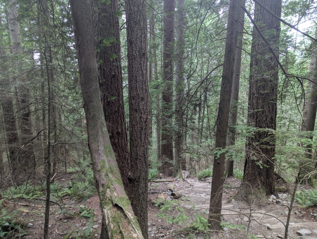 Without really thinking, I grabbed a coffee from the Starbucks at the base of the mountain. I knew it was going to be an uphill climb, but it’s also mostly stairs so keeping my hands free wasn’t really a concern. It felt a little silly, but I slugged up that mountain swirling that coffee cup the whole way, periodically stopping to enjoy the trees and take a swig while noting that elsewhere in the city, someone was also slugging around a coffee, but they were in an office building and about to fill out some useless spreadsheets for upper management.