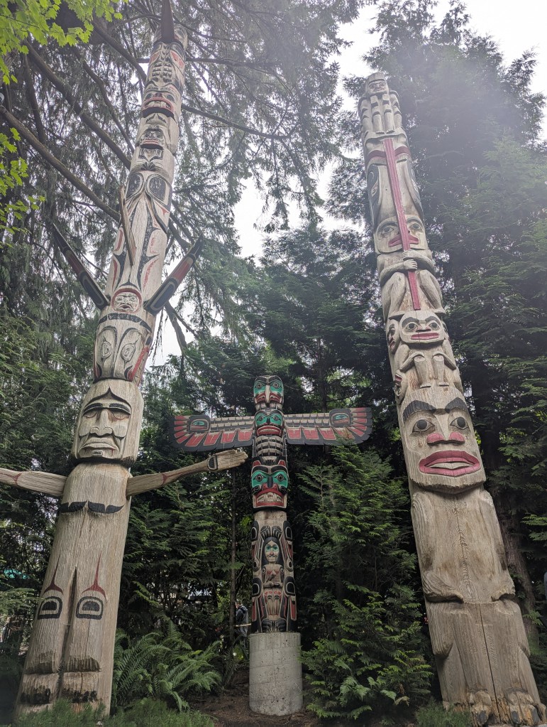 Admission is a little pricey, just shy of $80CAD for an adult for a day pass, but I was there and it was there, so I went ahead. Sometimes you’ve just gotta do the touristy stuff! It’s a pretty cool park actually, complete with some treetop trekking, rad totem poles and meet and greets with interesting wildlife like my new bird friends. I even saw a bald eagle in the wild flying by – it was beautiful. All said, the park was a nice leisurely way to cap off my afternoon after tackling Grouse before heading back to the city to enjoy the sunset by the water.
