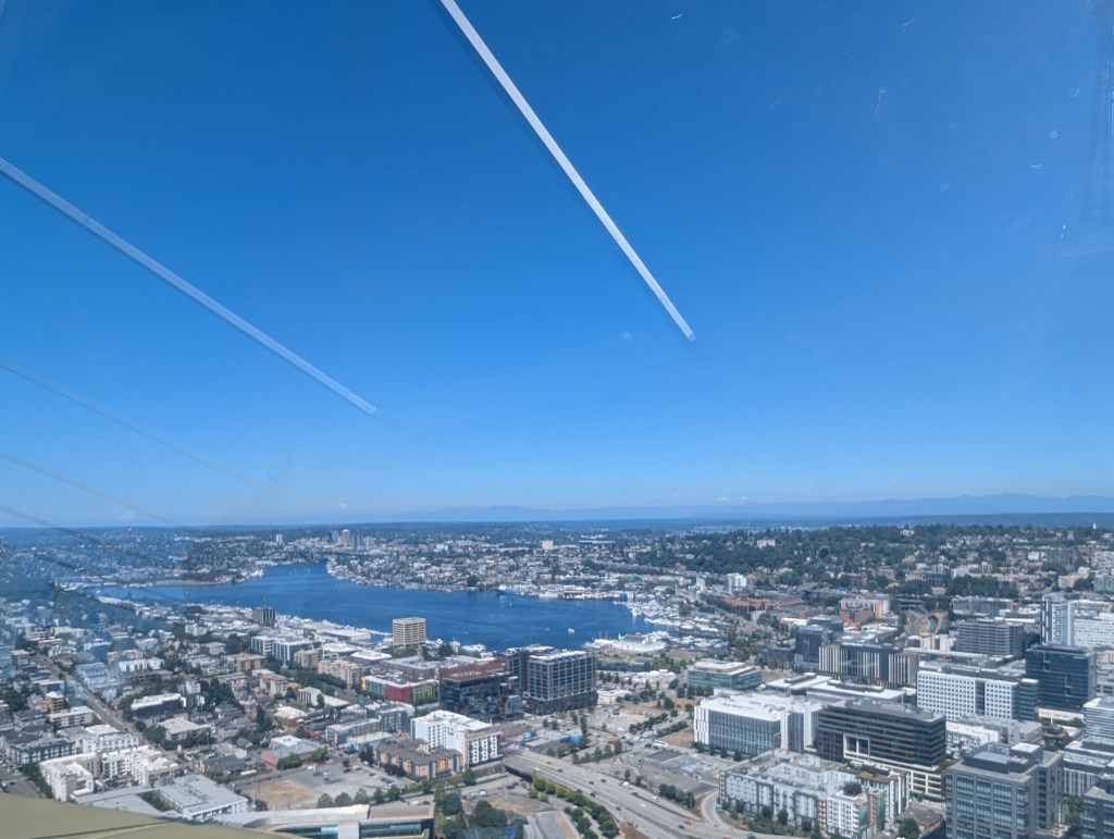 It was cool to see the city from higher up though and get a sense of how large it is. As I scowered the skyline I caught the Climate Pledge Arena sign below me (ah, there you are!) and felt even from this height it seemed on the smaller side than I was expecting.