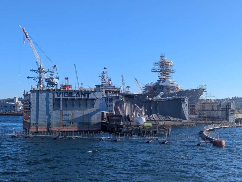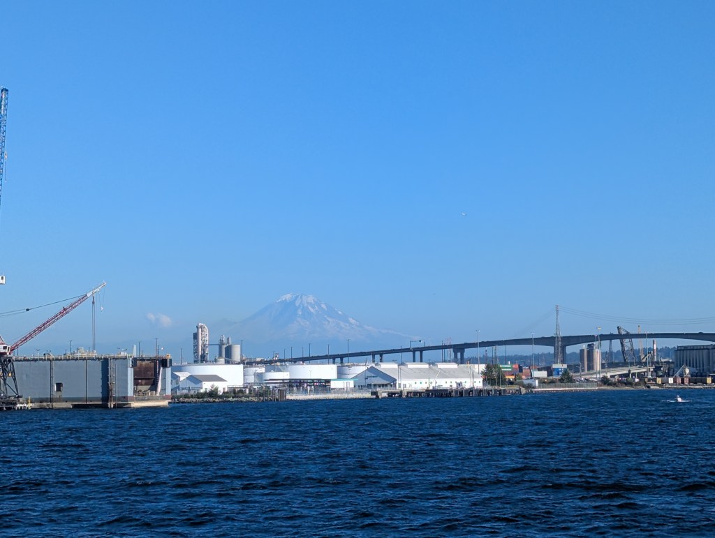 I ended up taking on of the Harbour cruises kind of on a whim. I wanted to see and learn more, but I also wanted to sit down and I thought the boat would offer a nice breeze to counter the heat. In retrospect I should have gone for the 2-hour option (because where do I have to be?) but I ended up taking the 1-hour one that kind of just goes around Elliott Bay. While in line for the cruise I ended up speaking to a man who was on vacation with his son; they were from Detroit (or another city right near Detroit that I can’t recall the name of now) and we ended up having some pretty great chats. When they found out I was from Canada we talked a little bit about our political troubles and I expressed I wasn’t sure I should’ve come to Washington given it all. Funnily enough, they expressed that they actually would have liked to visit Canada again (they love Toronto and I told them they’d be more than welcome by us), but they were worried about regaining entry to America.