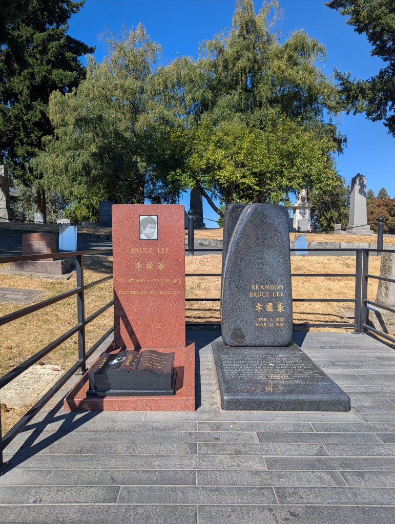 From Seattle U I made my way north towards Capital Hill for no real reason than the familiarity of the name and then to Volunteer Park for a bit of a break from the streets. I caught a glimpse of some bridge and body of water and made that my next destination which ended up being somewhere near the 520 and Montlake Playfield Park. The plan was then to head west along the water back towards Queen Anne because I’d heard it’s an interesting area, but I ended up dipping back to Volunteer Park to say hi to Bruce and Brandon Lee. I had no idea they were buried in Seattle.