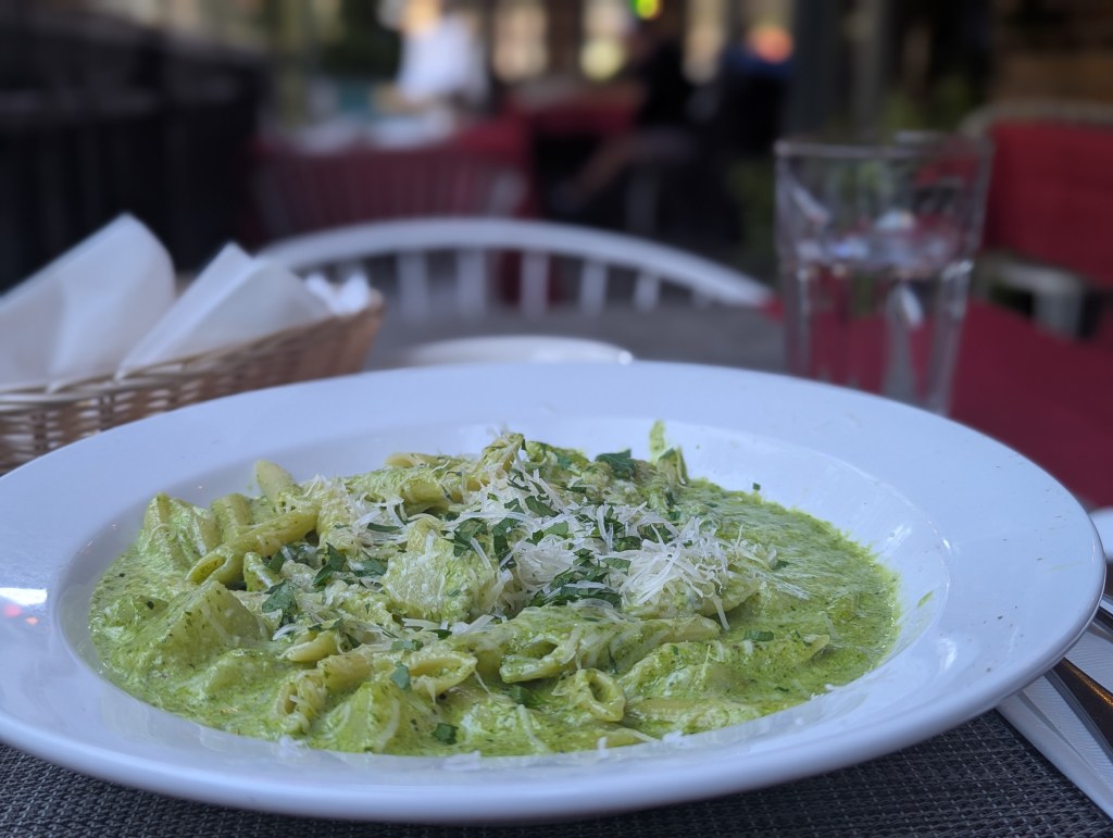 They serve fresh warm bread with oil & balsamic while you wait for your main and it was fantastic. I hadn’t had a pesto pasta in a long time and it didn’t disappoint. There was only 1 other table on the patio when I went so service was also super on point. I’d go back again sometime.