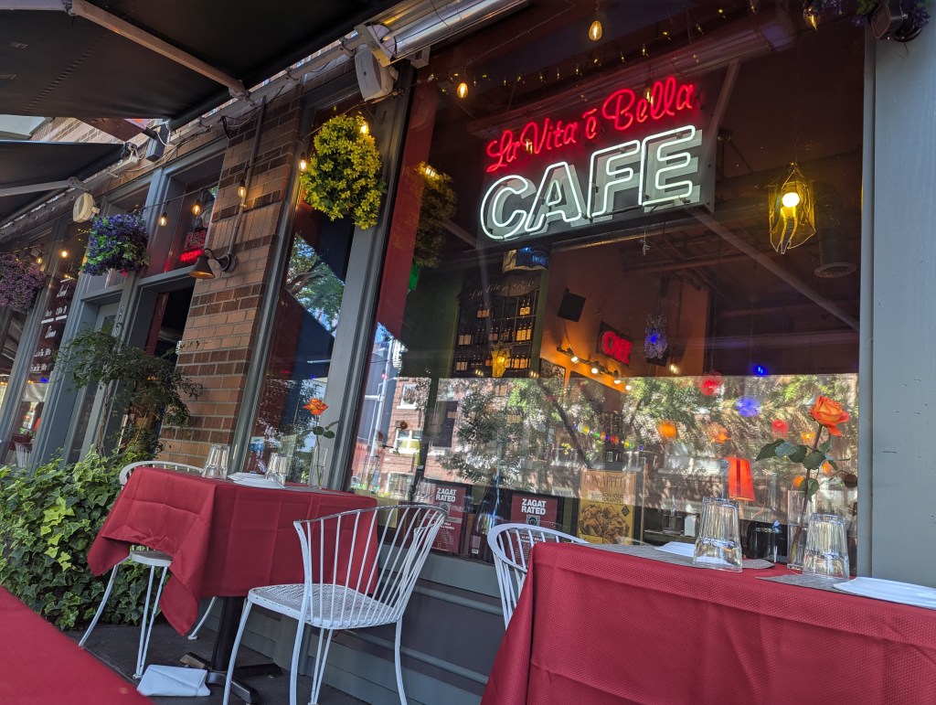 Being that it was my birthday, I did make a point to get over to a restaurant for a half- decent meal. Great State Burger was delicious the day before, but I was surrounded by tons of Italian restaurants where I was staying so I had to give one a go. I ended up choosing La Vita E Bella because it had a lovely looking patio.