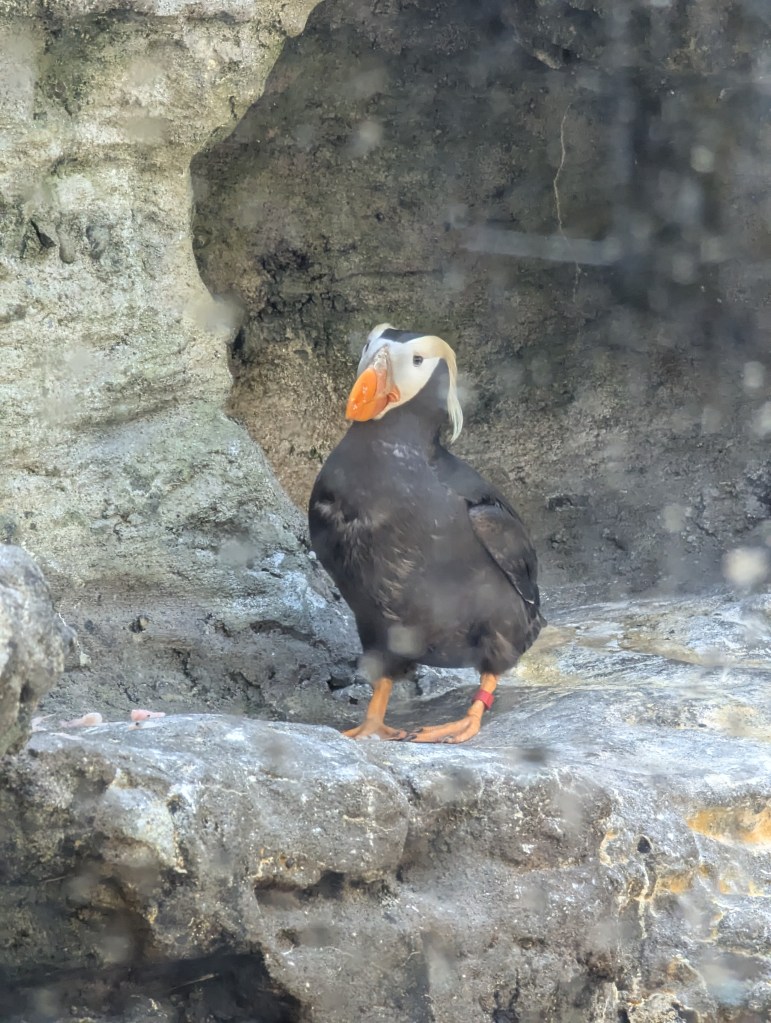 Don’t worry, I won’t give you a play by play of my Aquarium adventure, but I do recommend it fro the giant octopus (who was sleeping and probably entering your nightmares with its giant tentacles) and harbour seals (who were being playful and silly and enjoying having a captivated audience) and energetic puffins like this sharp-lookin’ one: